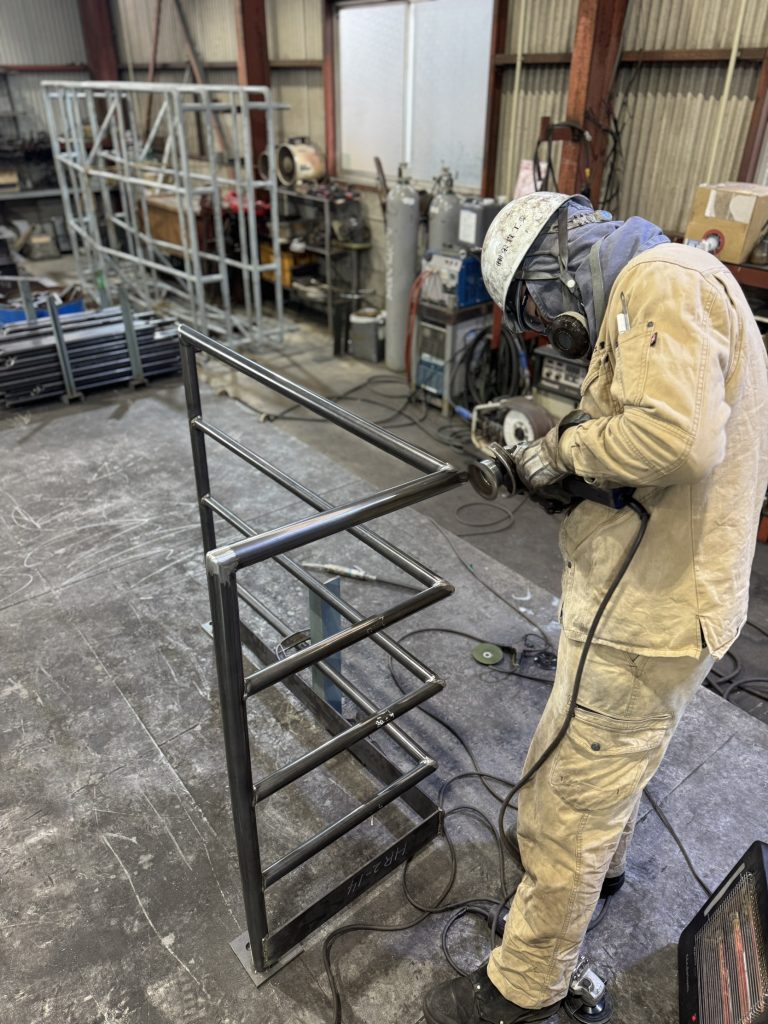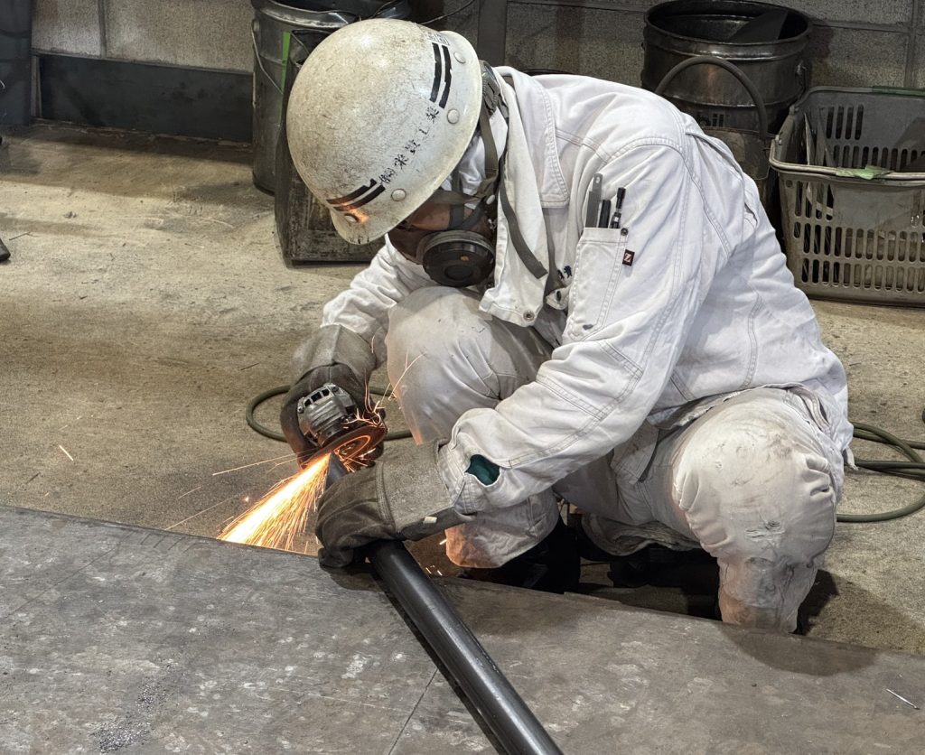 単純にパーツを溶接するだけでなく、組み立てる順番などを考慮し、バリ取りや溶接順番、溶接箇所も社員同士で声を掛け合い確認することで、品質向上やミスの防止、ひいてはお客様に喜んでいただける成果に結びついています。