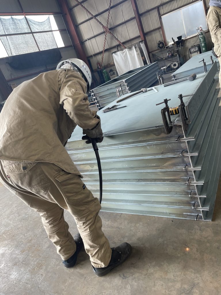 2026.4【現場で進む、製作と取り組み 】について 2026年4月21日 最終更新日時 : 2026年4月21日 栄貴工業 こんにちは、栄貴工業広報部です!今回も、栄貴工業の現場で進んでいる製作の中から、2つの製作事例と働く環境づくりの取り組みについてご紹介します。 ① 船上コンベアの製作(🔗:3月の記事) 先月に引き続き、船上から陸上へモノを運ぶ際に使用されるコンベアの製作を行っています。今回は、コンベアベルトの土台部分や、モーターが乗る台となるモーターベースのフレーム製作を進めています。大きな製品を自分たちの手で形にしていく中で、やりがいを感じながら、一つひとつの工程を丁寧に進めています。 ① 船上コンベアの製作 先月(🔗:3月の記事)に引き続き、船上から陸上へモノを運ぶ際に使用されるコンベアの製作を行っています。今回は、コンベアベルトの土台部分や、モーターが乗る台となるモーターベースのフレーム製作を進めています。大きな製品を自分たちの手で形にしていく中で、やりがいを感じながら、一つひとつの工程を丁寧に進めています。 前 次 ② 資材棚の製作(造船所様) 大手造船所様の倉庫内に設置される、資材棚の製作も行っています。 サイズは3m×2mをはじめ、大小さまざまなサイズが約7種類あり、倉庫内すべての棚の製作をご依頼いただいています。 材料のサイズや指定された規格に合わせて、工場内で分担し、協力しながら製作を進めています。 前 次 現場の声を大切にする環境づくり 栄貴工業では、社員が働きやすい環境づくりにも力を入れています。 作業に必要な工具や作業服についても、現場で働く社員の意見を取り入れながら、柔軟に対応しています。 例えば作業服では、「色落ちしにくい」「破れにくい」など、実際の使用感を踏まえた意見をもとに選定しています。 「現場の声が一番大事」という考えのもと、会社主導で決めるのではなく、社員に寄り添った環境づくりを大切にしています。 ⭐︎ 働きやすさを支える制度 社員が安心して働けるよう、各種制度も整えています。 ・退職金制度(勤続2年以上) ・生命保険制度(2026年より開始) ・資格取得サポート(資格費用負担/教材会社負担) ものづくりのやりがいと、これから 栄貴工業では、大きな製品をチームで作り上げるやりがいを感じながら、日々の製作に取り組んでいます。「現場の声を大切にしながら、より良い環境と、より良いモノづくりを追求していく。」そんな環境の中で、私たちと一緒に働いてみませんか? ものづくりのやりがいと、これから 栄貴工業では、大きな製品をチームで作り上げるやりがいを感じながら、日々の製作に取り組んでいます。「現場の声を大切にしながら、より良い環境と、より良いモノづくりを追求していく。」そんな環境の中で、私たちと一緒に働いてみませんか? ↓↓求人情報はコチラから↓↓ ↓↓求人情報はコチラから↓↓ クリックで外部リンクへとびます。